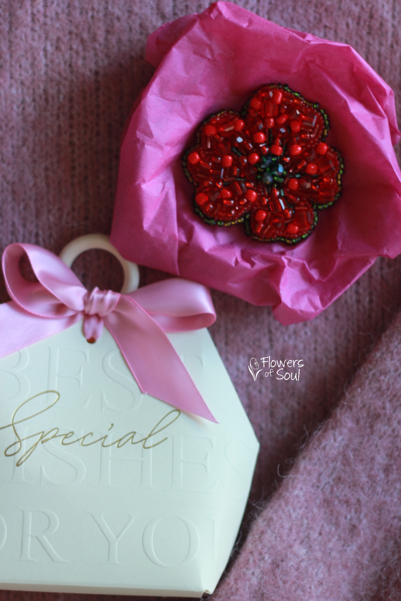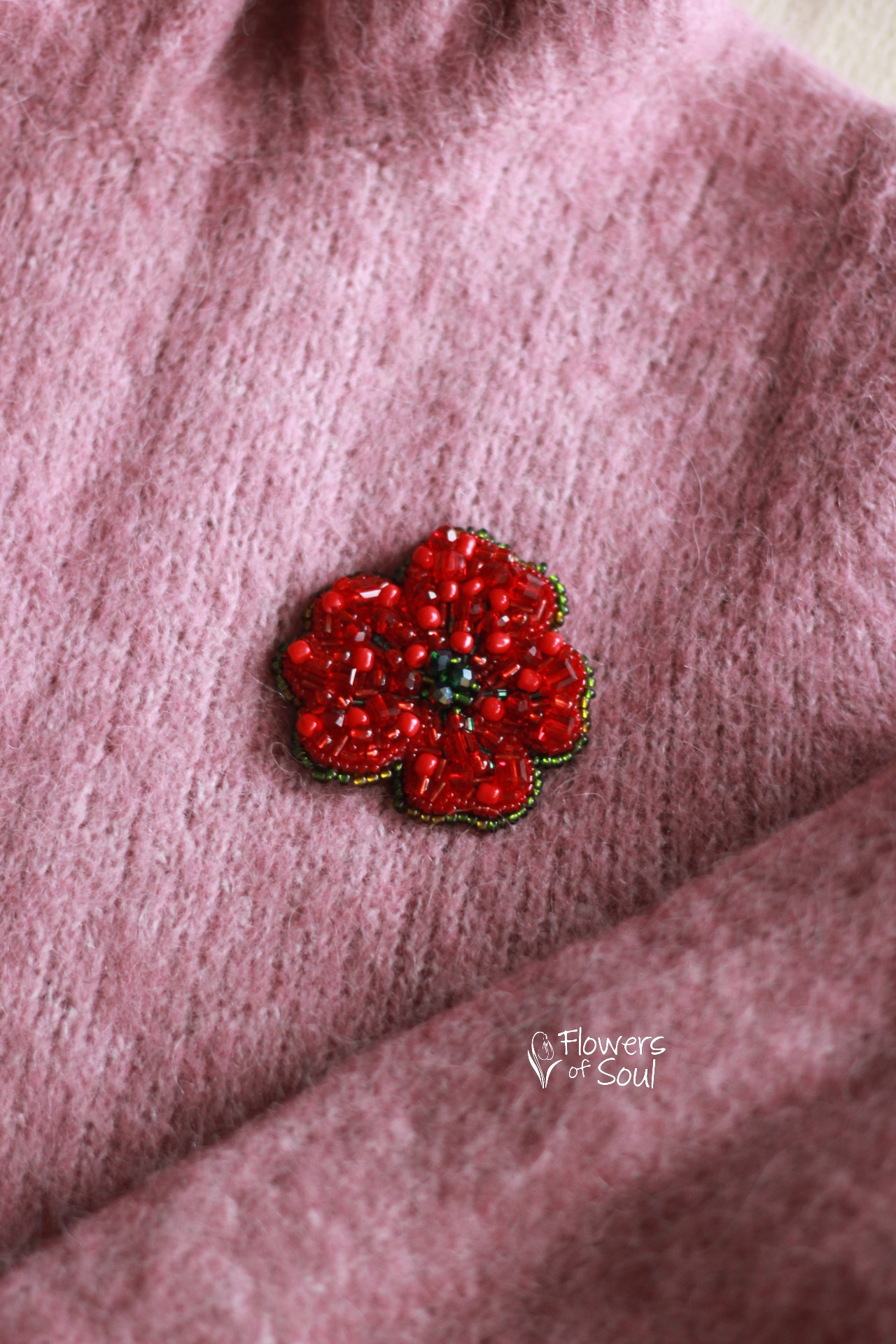 O broșă delicată sub formă de anemonă, perfectă pentru orice ocazie. Realizată din mărgele și cristale ce conferă o strălucire subtilă, cusute manual cu multă migală.