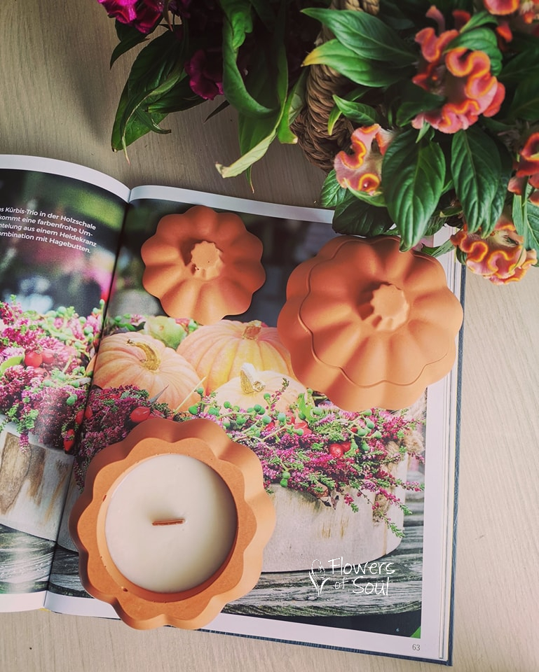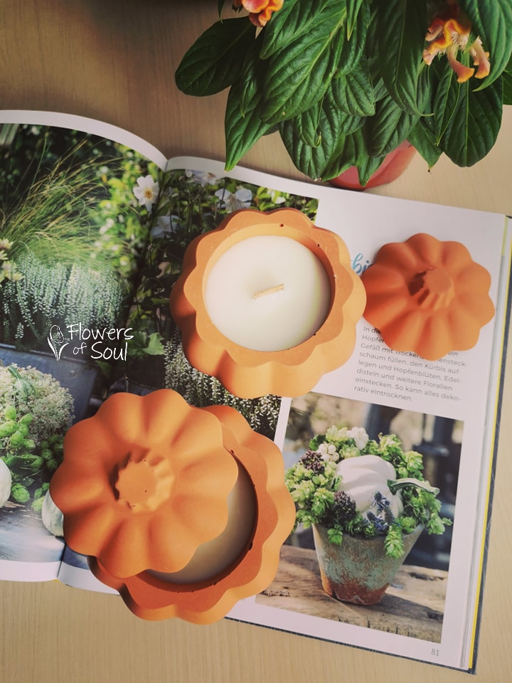Lumânare parfumată din ceară naturală de soia, turnată manual în vas din beton cu capac, realizat în atelierul nostru.